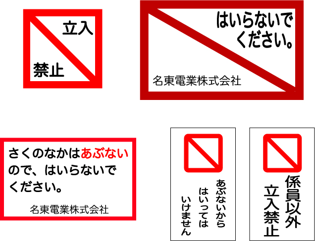 各種標識、看板、札、ネット類取り扱いあります。詳細はお問い合わせください。・FRP製、アルミ製、アクリル製、塩ビ(カイダック製)、PP(ポリセーム製)など